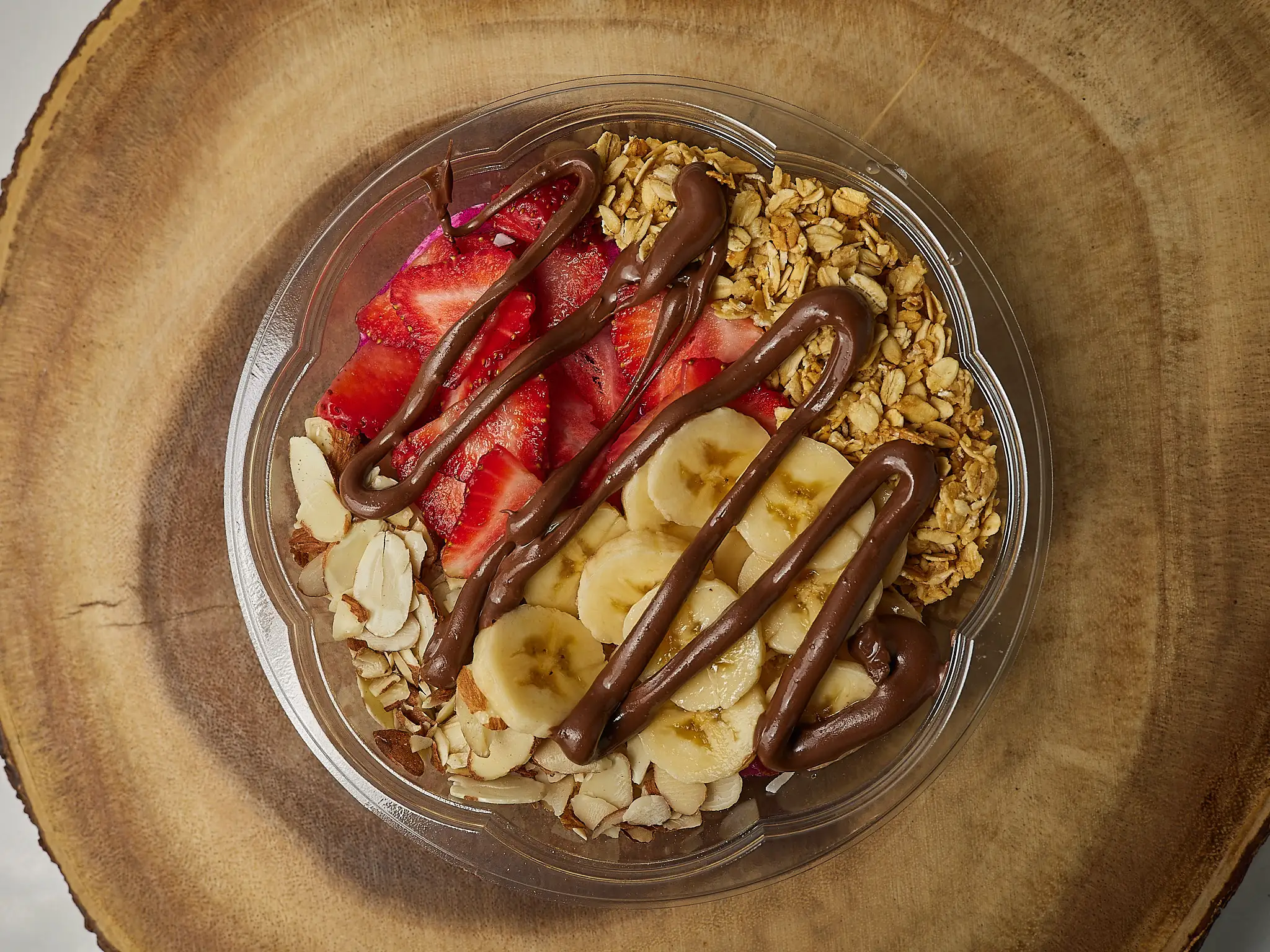 Cream cheese, banana, strawberry, granola, nutella & chocolate chips